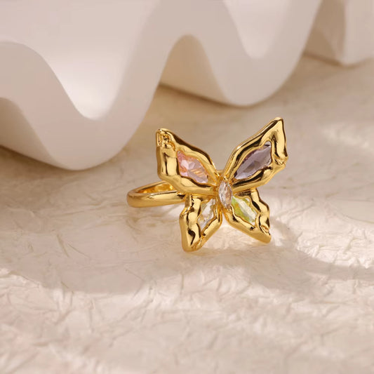 Vibrant Multi-Gem Stone Butterfly Statement Ring