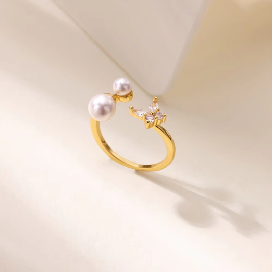 6. Asymmetric Pearl & Pave Butterfly Adjustable Ring