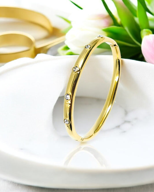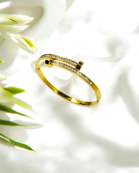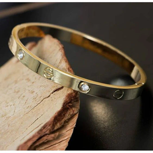 Classic Diamond Studded Gold Plated Cuff Bracelet