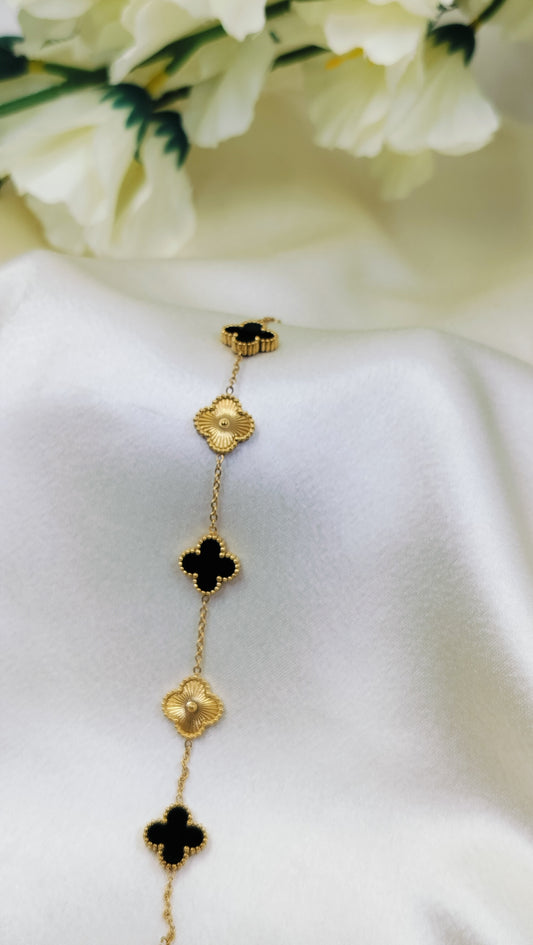 Black Textured Clover Gold Plated Bracelet