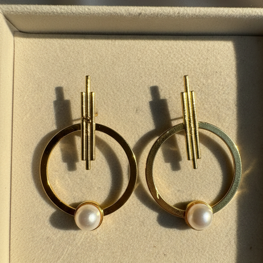 Abstract Gold Loop & Pearl Earrings