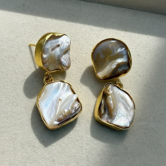 Luxe Champagne Shell Pearl Drop Earrings
