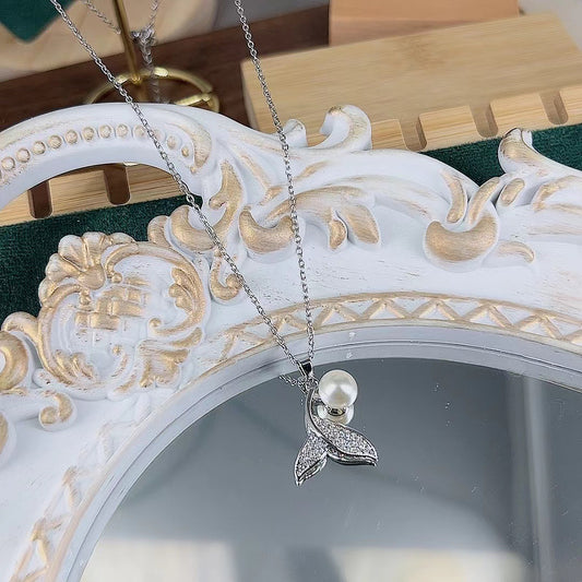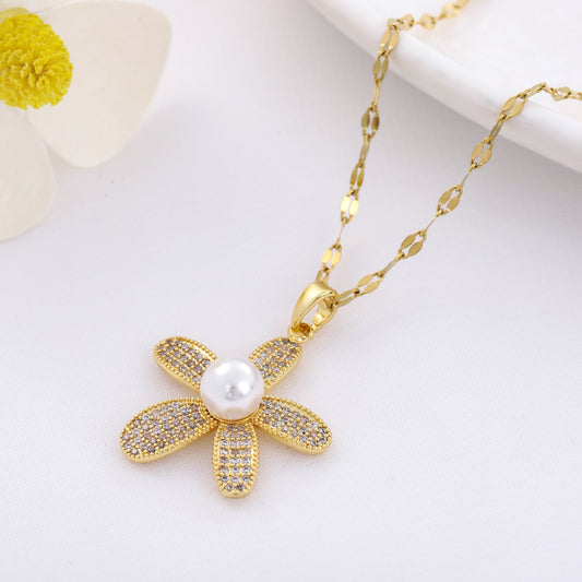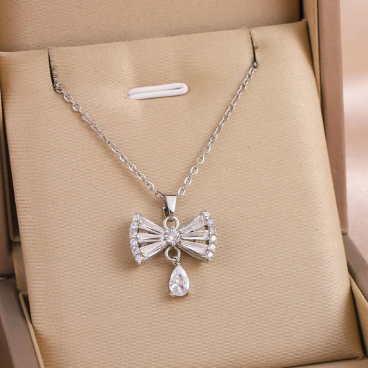 Golden Bowknot Zircon Pearl Charm Pendant Necklace