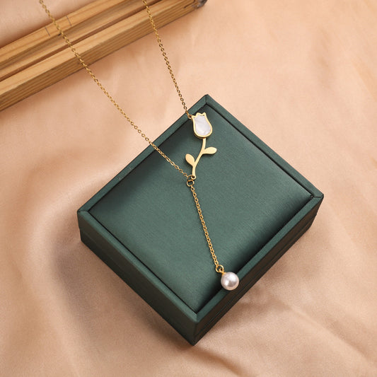 Dainty White Enamel Gold Tulip Pendant Necklace