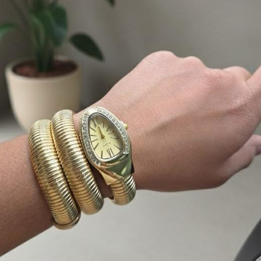 Crystal Encrusted Dual tone Snake Watch Timepiece- Yellow