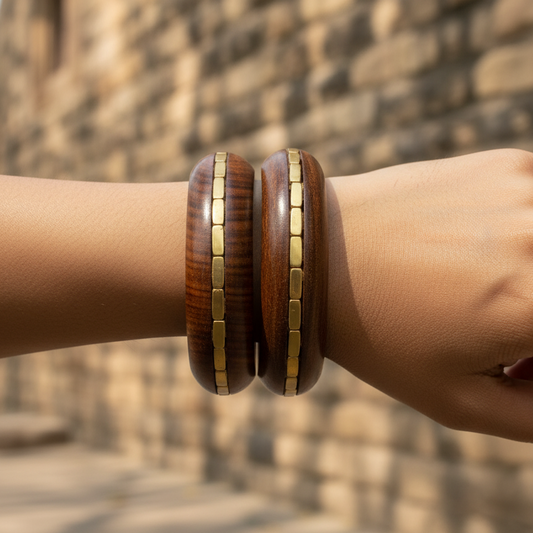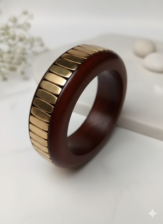 Featuring sleek brass stripes against smooth bangle wood, the Kiran bangle adds a refined contemporary appeal suitable for both casual and festive looks.
