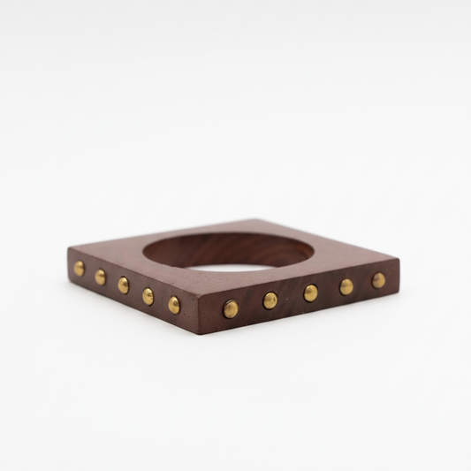 - Brass Studded Broad Square Wooden Handmade Bangle