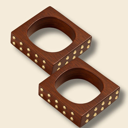 - Brass Studded Shaurya Square Wooden Handmade Bangle