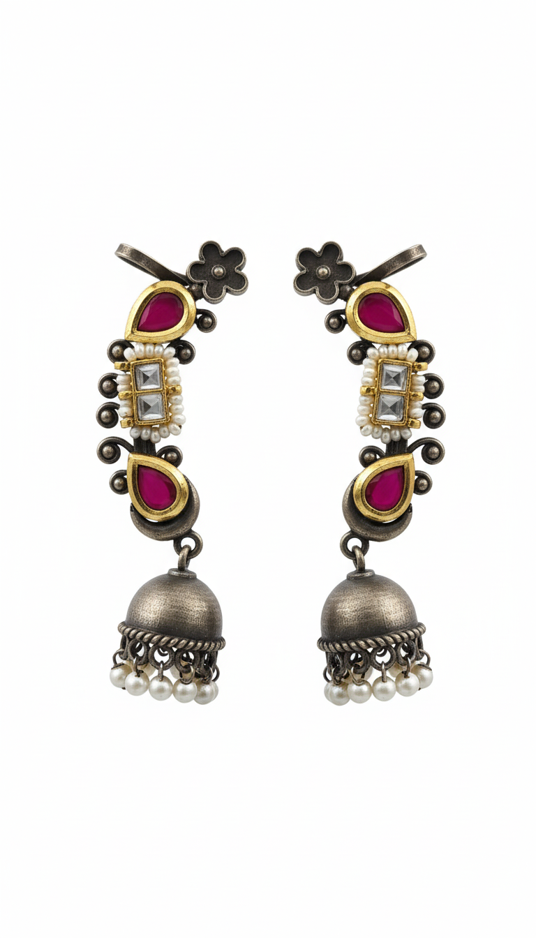Antique Gunmayi Pacchi Kundan Oxidised Earcuff Jhumki