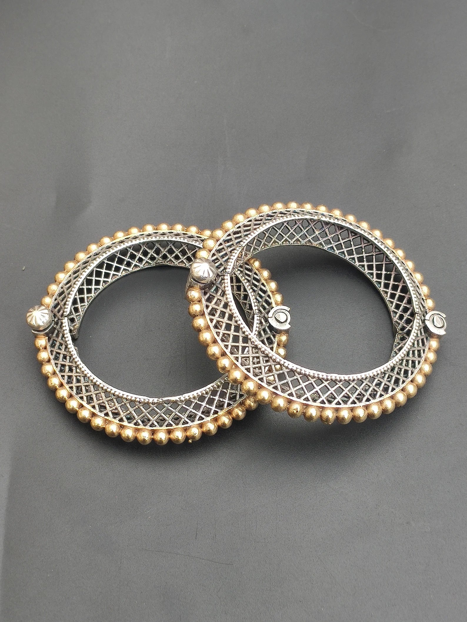 Dual Tone Silver Oxidised Jaya Kada Antique Handcrafted Bangle With Screw Opening