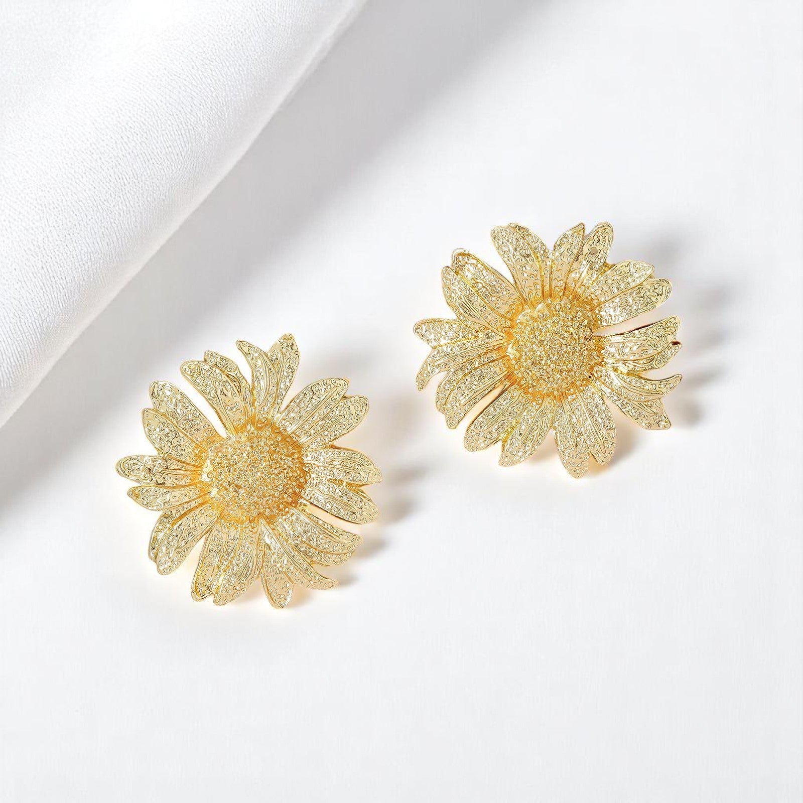 Gold Statement Sunflower Stud Earrings For Women |