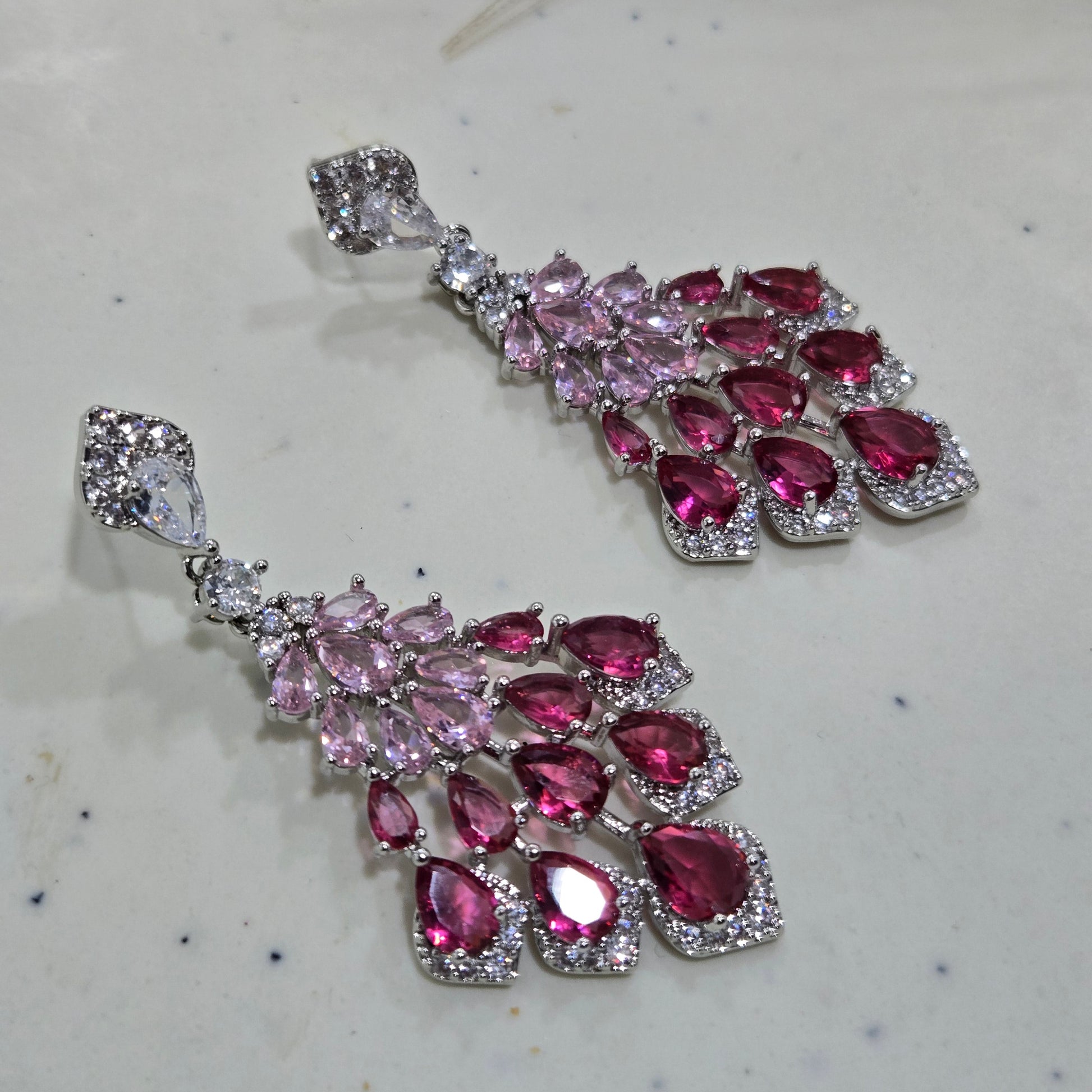 Cascading Pink Crystal Drop Silver Earrings