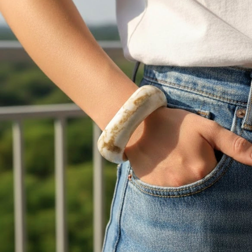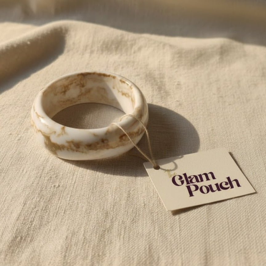 Soft, neutral, and beautifully marbled — the Vanilla Marble Resin Bangle adds earthy elegance to your style. Its smooth round silhouette and beige-brown swirls make it a chic accessory for casual, festive, and office wear.