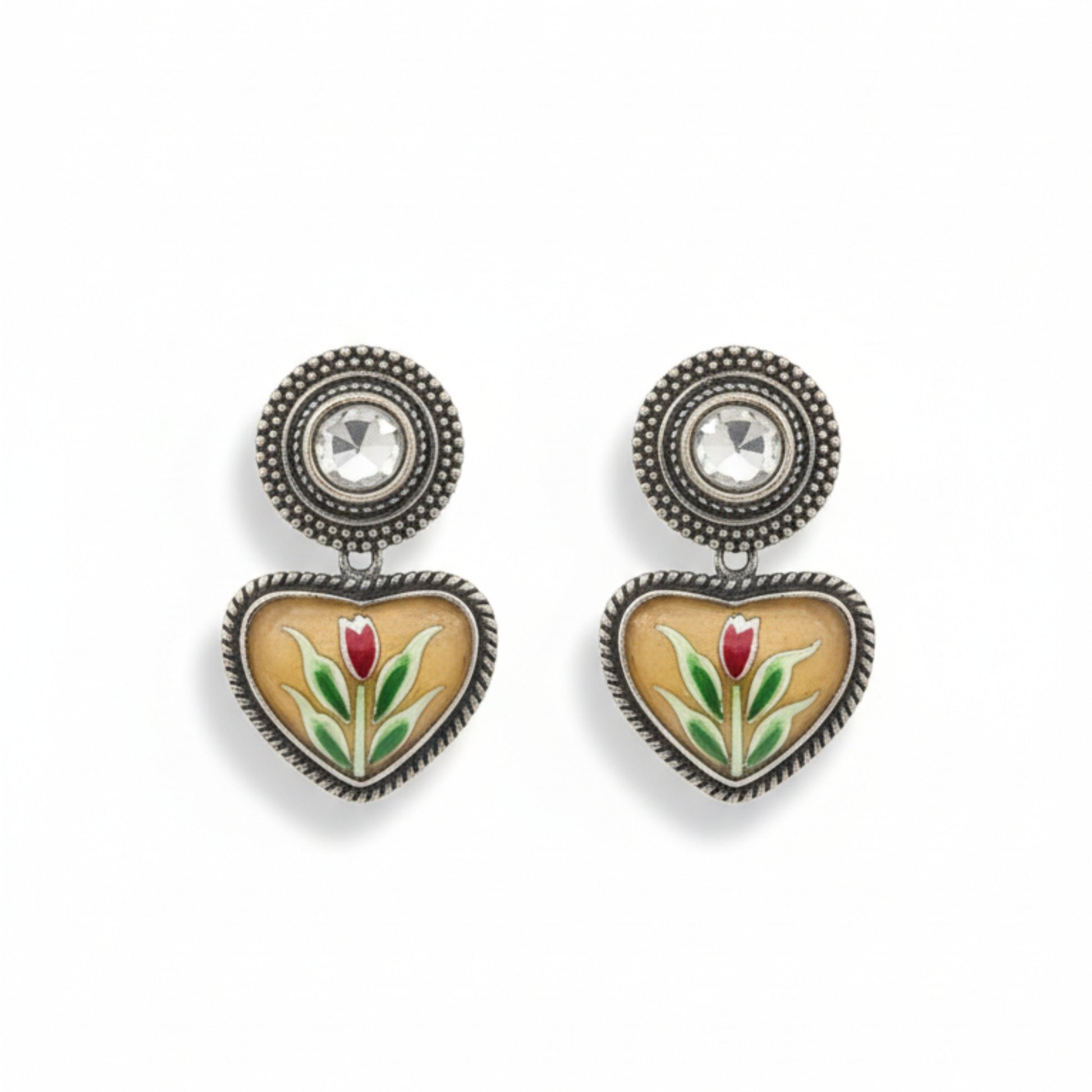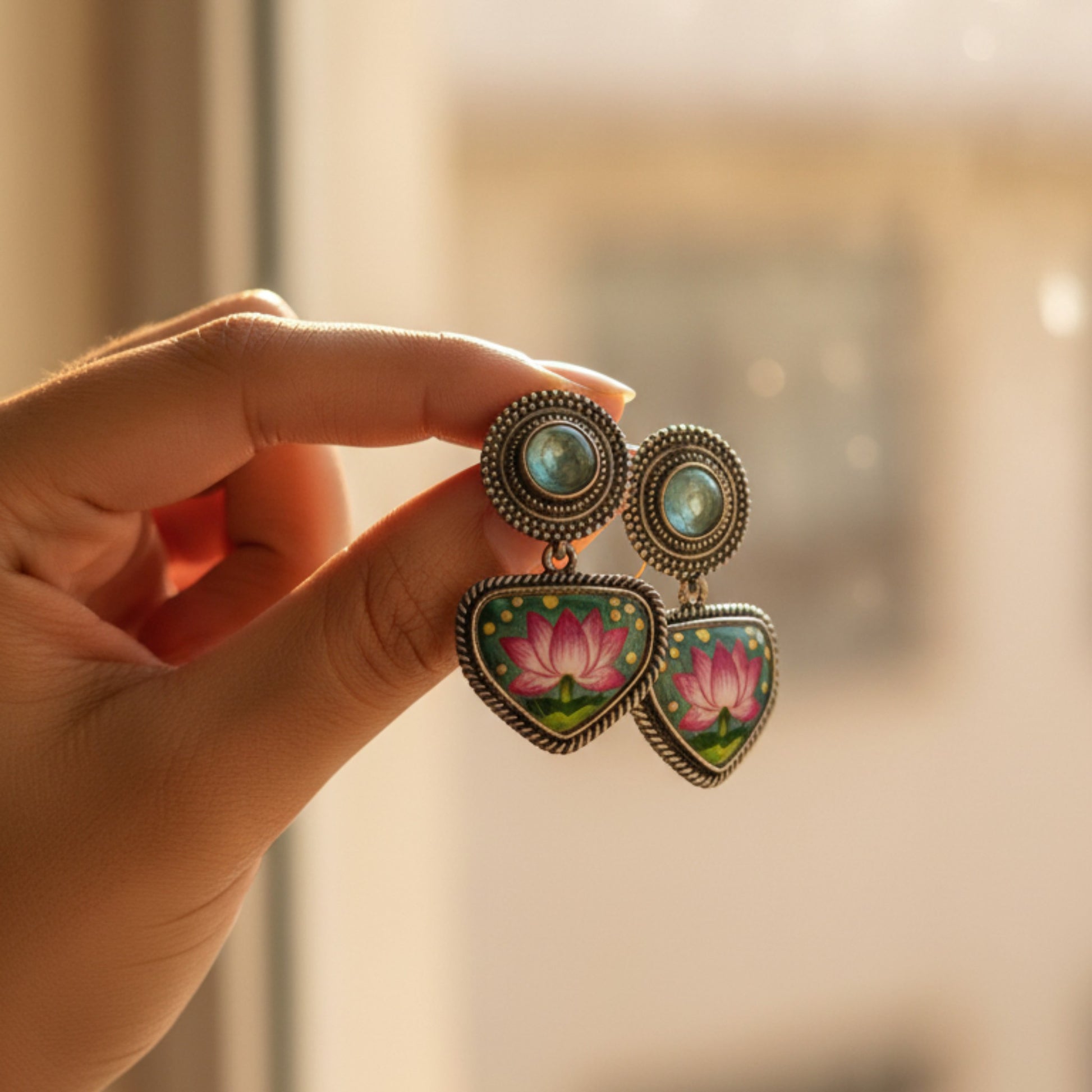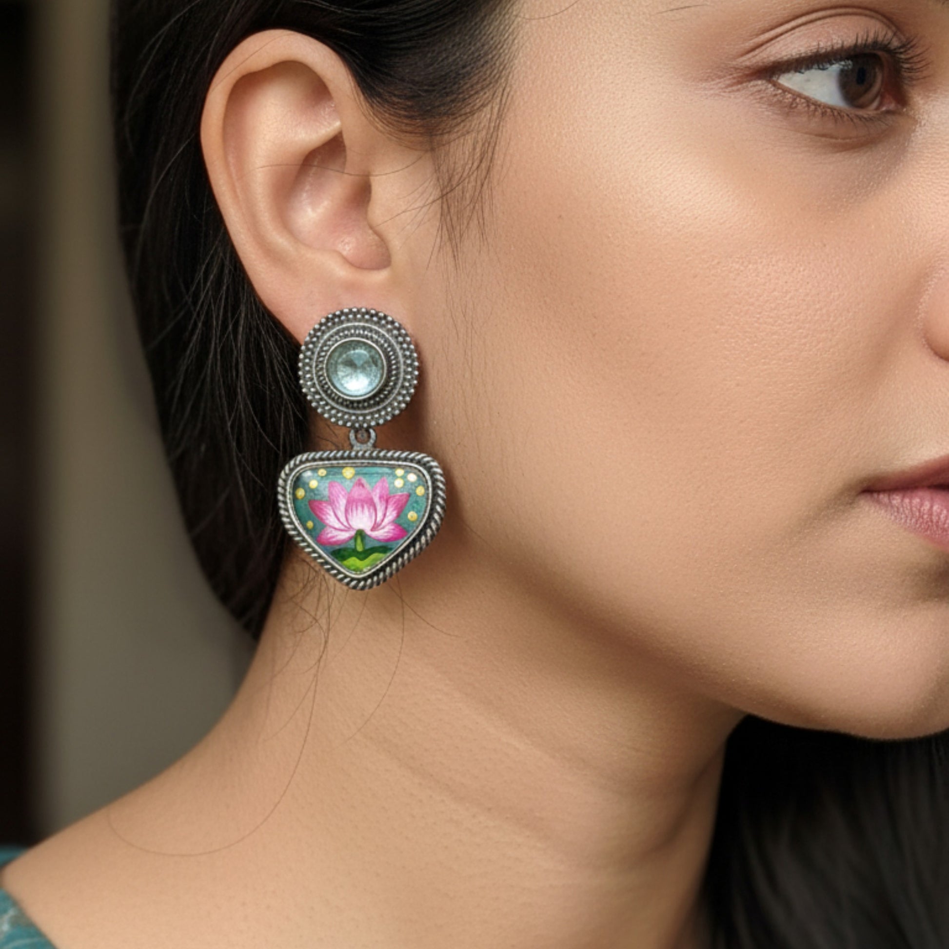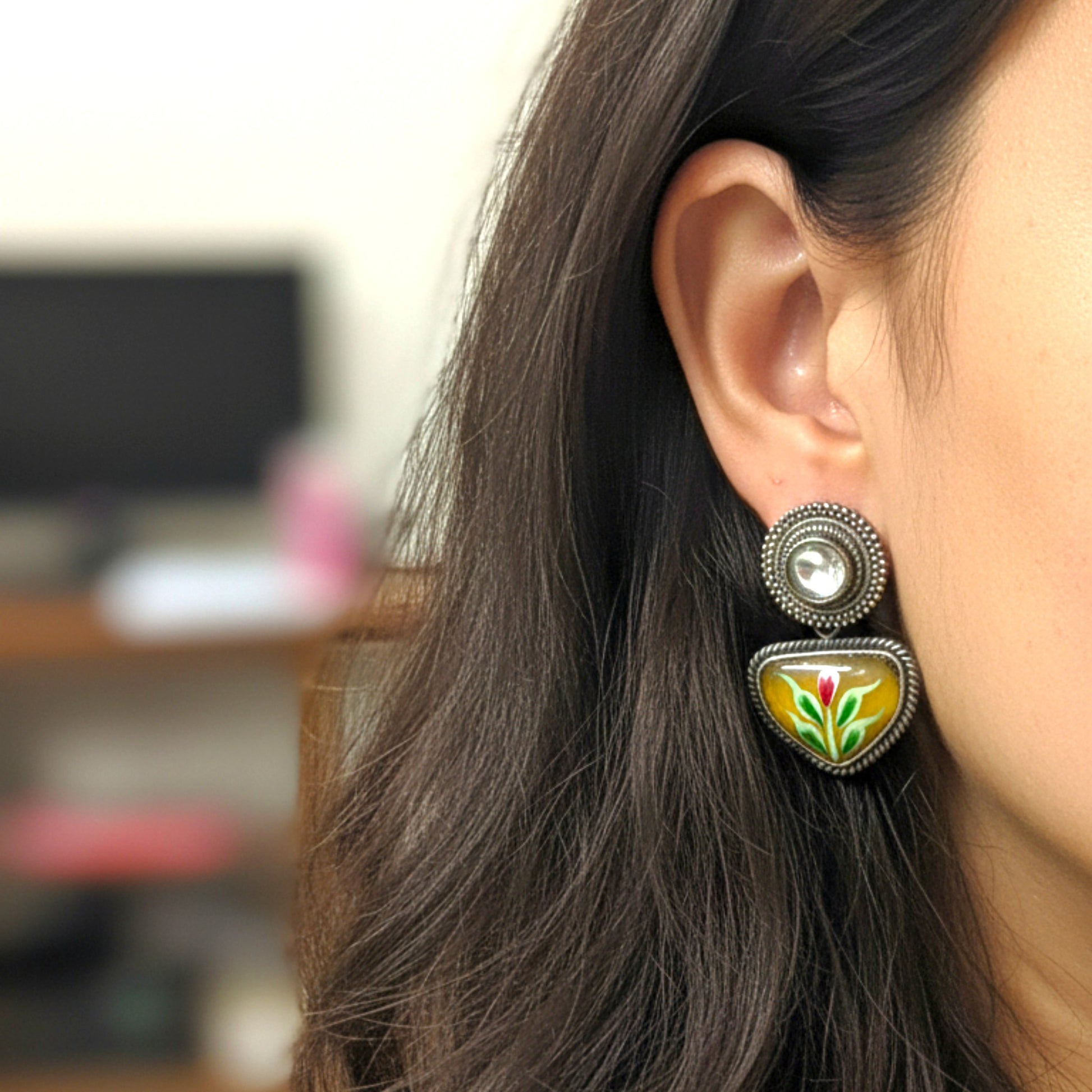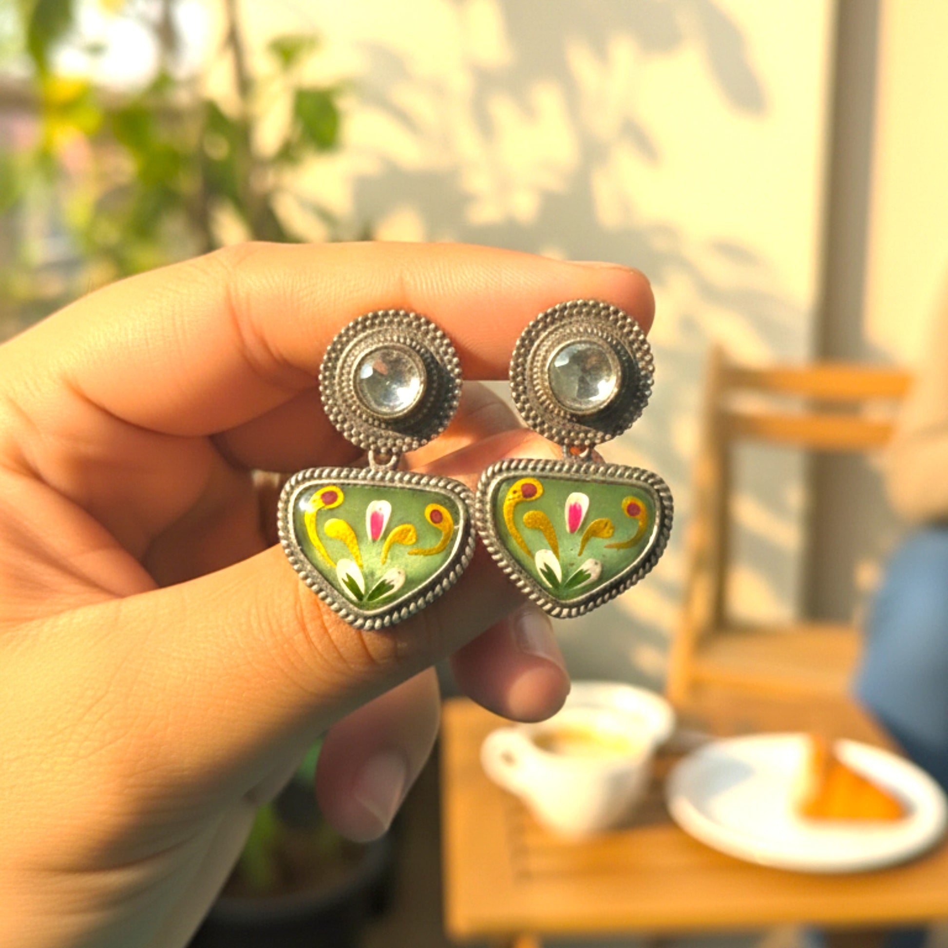 Visvadipti Handpainted Embellished Oxidised Jhumka Statement Earrings
